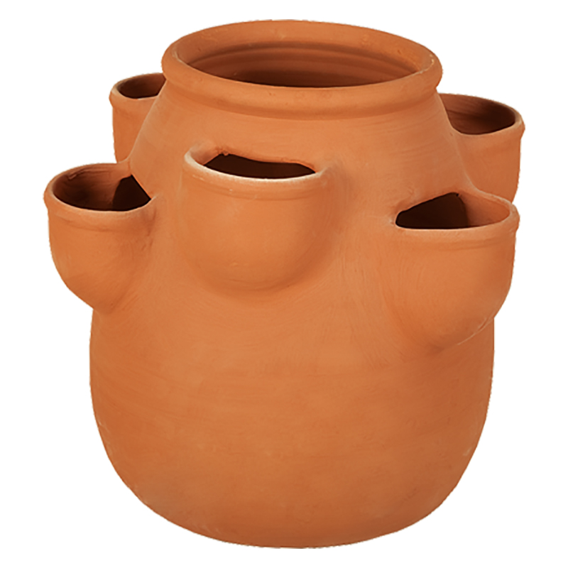Strawberry garden pot of the STARS CERAMICS brand. Made of terracotta-colored ceramics. The strawberry is 32 cm high and has 6 holes. The pot is suitable for different types of plants and performs a decorative function. Its place is outside - in the garden or on the terrace, where you have formed a green area or a small oasis of flowers. Ceramic pots are a better choice for flowers than plastic ones because they retain more moisture. They are definitely more beautiful, but they are also more durable.