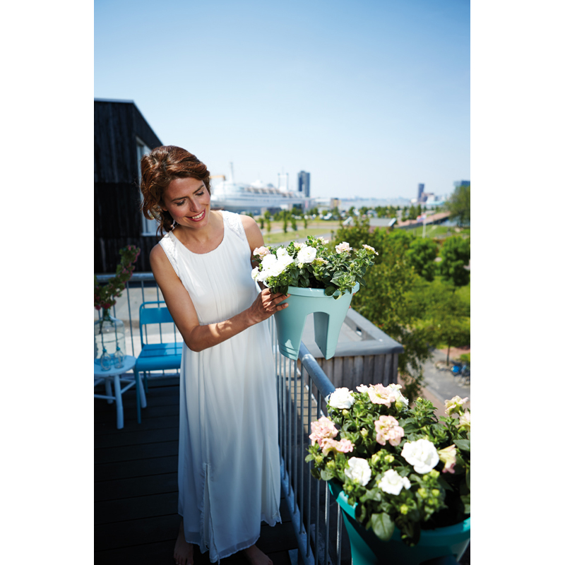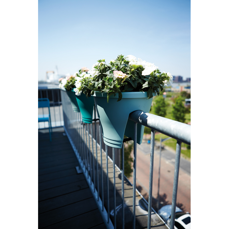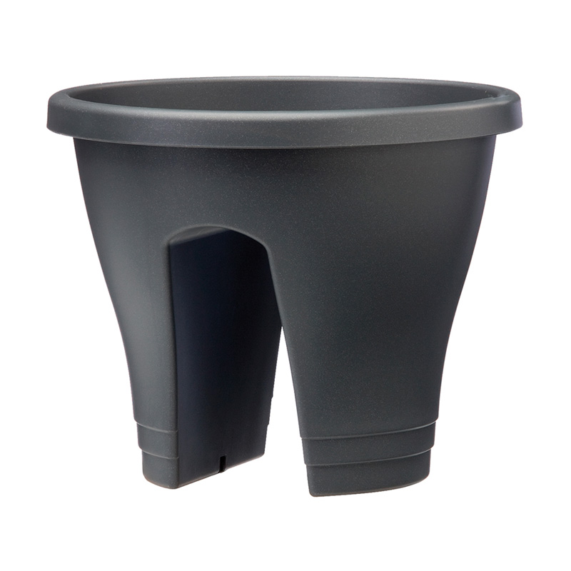 Plastic flowerpot from the CORSICA series. The pot is of the "Flower Bridge" type and is Anthracite in color and has a capacity of 6 liters. This pot is a unique and extremely elegant solution for decorating your balcony, railing or fence. The dimensions of the pot are 30 x 24 cm.