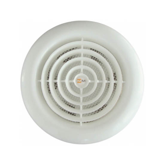 Round fan with shut-off valve MMOTORS MM100, suitable for long-term or intermittent operation in small or medium-sized domestic, sanitary and commercial premises; for wall mounting ceiling or suspended ceiling, can be used as a heat exchanger between adjacent rooms, with a rolling double encapsulated bearing, guaranteeing 30,000 hours of operation.