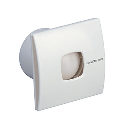 Bathroom fan CATA model Silentis with mounting diameter ф120 mm and flow rate 190 cubic meters/h.It has a low noise level of 39 dB with a power of 20W. The fan has a non-return valve.