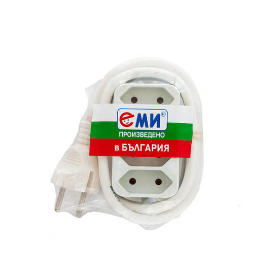 White plastic EMI power strip with a power cable length of 1.5 meters and 4 sockets for electrical appliances. The power strip is a necessary benefit for every household or office, where there are electrical appliances, but not enough electrical outlets. It can be used in any room where there are no high levels of humidity.