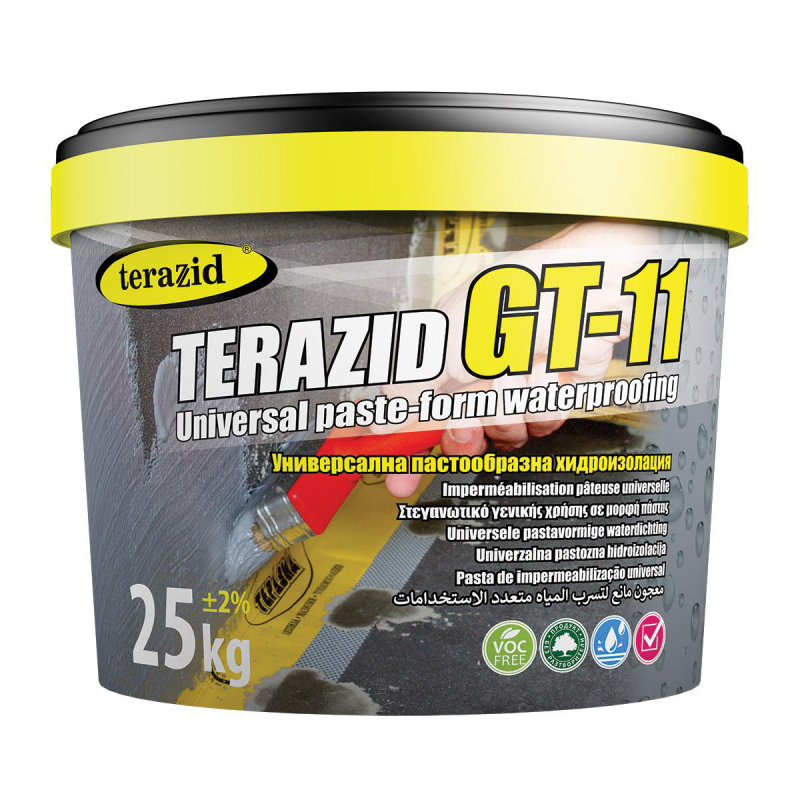GT11 liquid waterproofing is a ready-to-use mixture that offers reliable protection against moisture for various building elements. Thanks to its elastic formula, the product is easy to apply and forms a continuous, resistant layer that prevents water penetration. It is suitable for interior spaces such as bathrooms, kitchens and wet rooms where stable and long-lasting insulation is required under tiles and ceramic flooring. The product is designed to provide maximum protection against capillary moisture and groundwater.