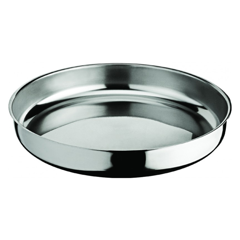Baking tray of the CHROME SILISTRA brand. The tray is round in shape with a diameter of 24 cm and a height of 4.5 cm. It is made of noble stainless steel /stainless steel/ with a thickness of 0.8 mm.