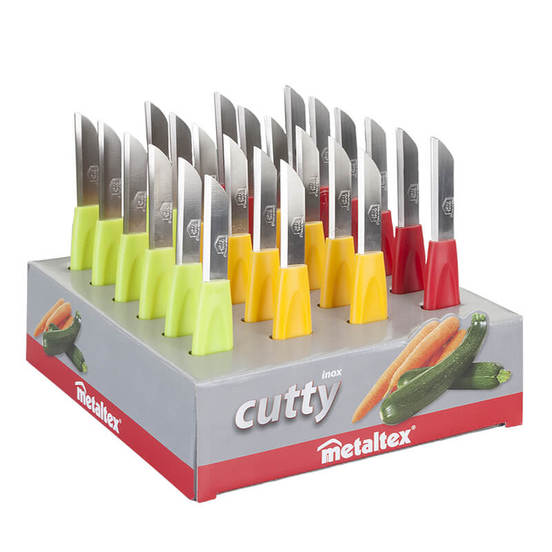 Cutty vegetable knife from the METALTEX brand. The blade of the cutting tool is made of stainless steel and the handle is plastic. The knife is dishwasher safe.