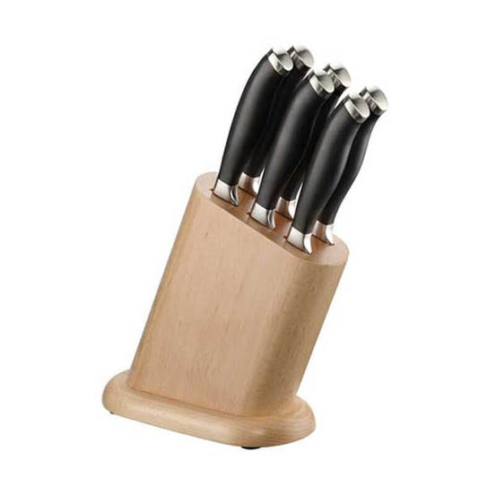 Set of kitchen knives of 7 parts of the PINTINOX brand. The set includes 6 knives with different purposes and stand. The knives are made of stainless steel 18/10, and the stand is made of wood.