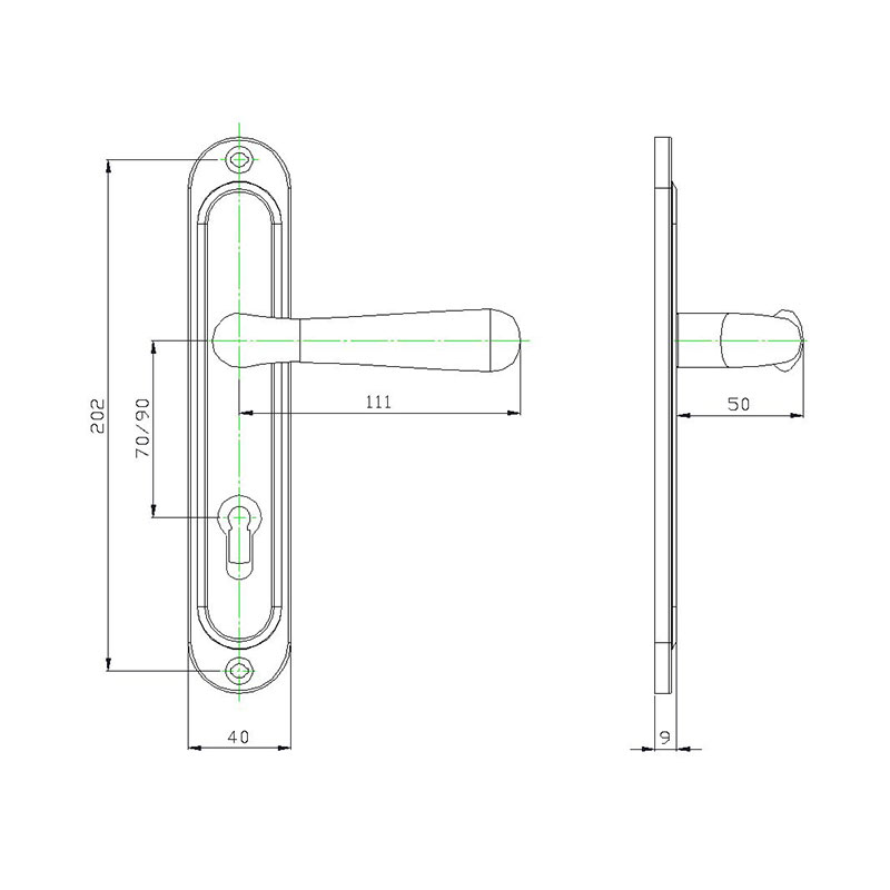 The handle is designed for installation on entrance doors, interior doors, service rooms, etc.with interior lock fitted. Handles of this type are preferred for rooms where maximum security is not sought. These can be balcony doors, office doors, production room doors and others.