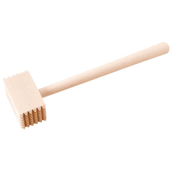 Kitchen hammer for meat brand FACKELMANN. The device is made of wood. The length of the hammer is 32 cm. It is designed for pounding meat before heat treatment. This is done in the name of the better taste of the meat and so that it does not stay raw in places. The wooden kitchen hammer is a practical and convenient kitchen helper of essential necessity, which is indispensable in its purpose. Cleaning the appliance is very easy.