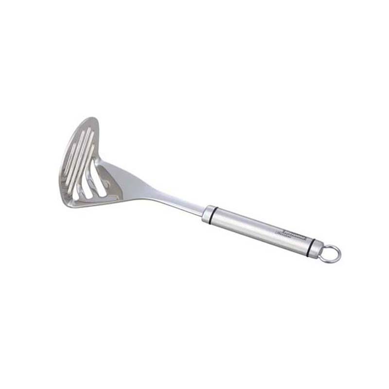 The handle of the press is in an oval ergonomic shape, which contributes to the pleasure of working in the kitchen. The device has a practical hole for hanging. It is suitable for both home and professional use in the kitchens of restaurants and eateries. It combines best with the other utensils in the series, with which it forms a stylish kitchen configuration.
