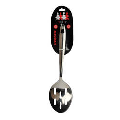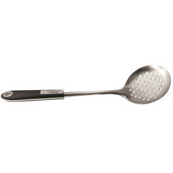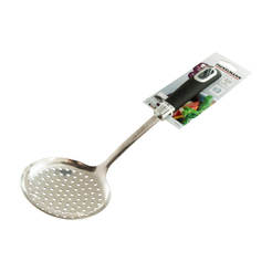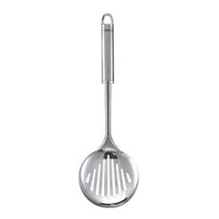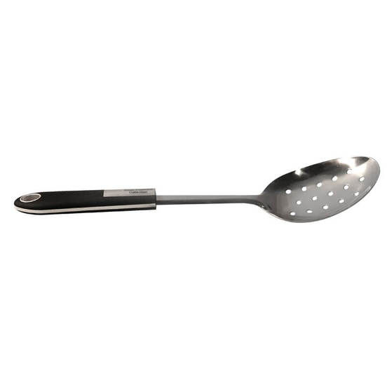 PREMIER slotted spoon. The working part of the spoon is made of stainless steel, and the handle is made of plastic and is in ergonomic shape. Designed for straining and frothing dishes and soups, this spoon is an essential for any kitchen. With it you can also serve hot meats, potatoes, vegetables, etc., as the sauce drains through the holes. It is a practical and convenient assistant for every cook. It combines best with the other appliances of the brand, with which it forms a stylish kitchen configuration. The spoon has a hole for hanging. Cleaning the appliance is very easy.