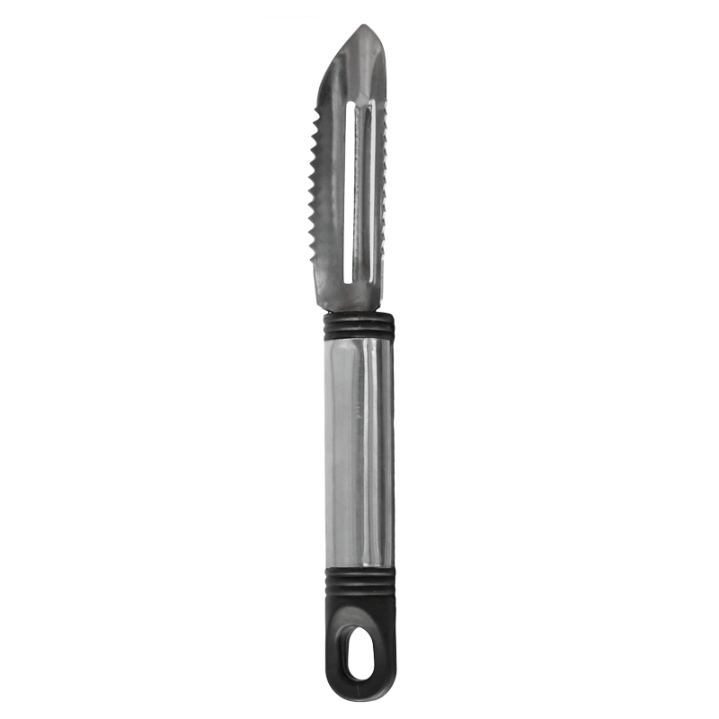 PREMIER potato peeler. The working part of the peeler is made of stainless steel, and the handle is made of plastic and is in an ergonomic shape, which provides a good grip and maximum ease of use. The model has a longitudinal knife. The appliance can be used both at home and in the kitchens of restaurants and other eateries. The potato peeler has a practical hanging hole. It combines best with the other appliances of the brand, with which it forms a stylish kitchen configuration.