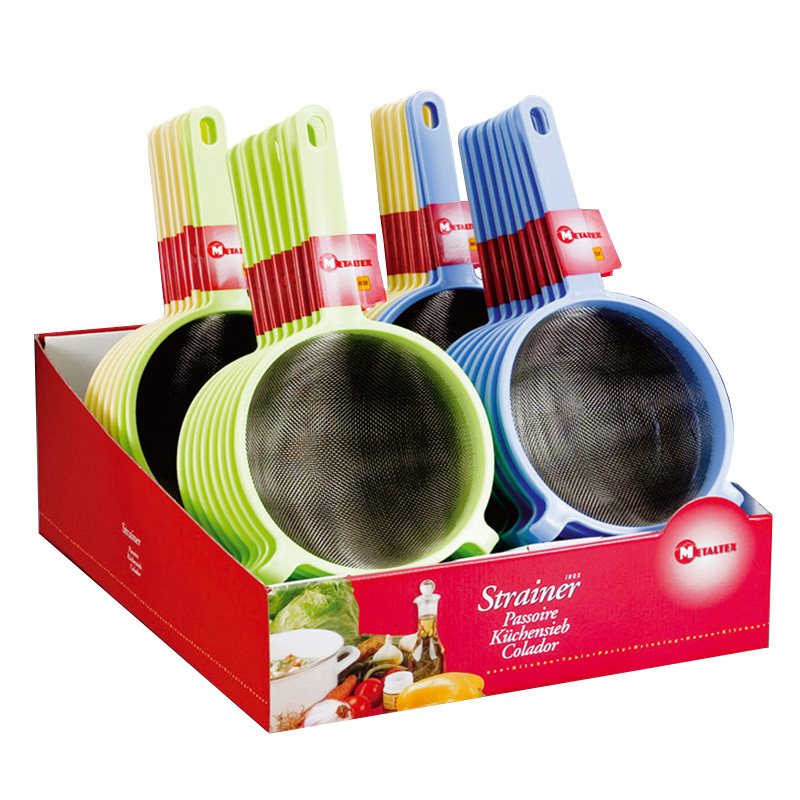 Kitchen strainer of the METALTEX brand. Made of plastic. The strainer is 33 cm long and 18 cm in diameter. It has a practical hanging hole. The strainer is a practical and convenient kitchen helper of essential necessity, which is indispensable for its purpose. It combines best with the other appliances of the brand, with which it forms a stylish kitchen configuration.