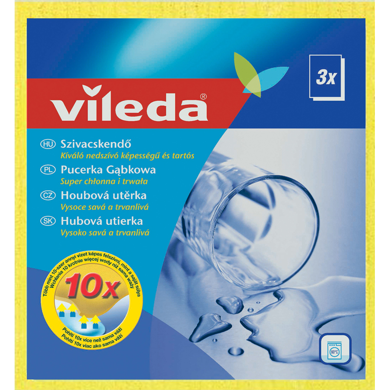 Sponge absorbent towels of the VILEDA brand in a set of 3 pieces. The towels measure 21 x 19 x 1.5 cm. Their composition is 75% cellulose and 25% cotton. They absorb moisture and dry perfectly different surfaces. They are ideal for cleaning kitchen utensils, bathroom, walls, doors, furniture and more.