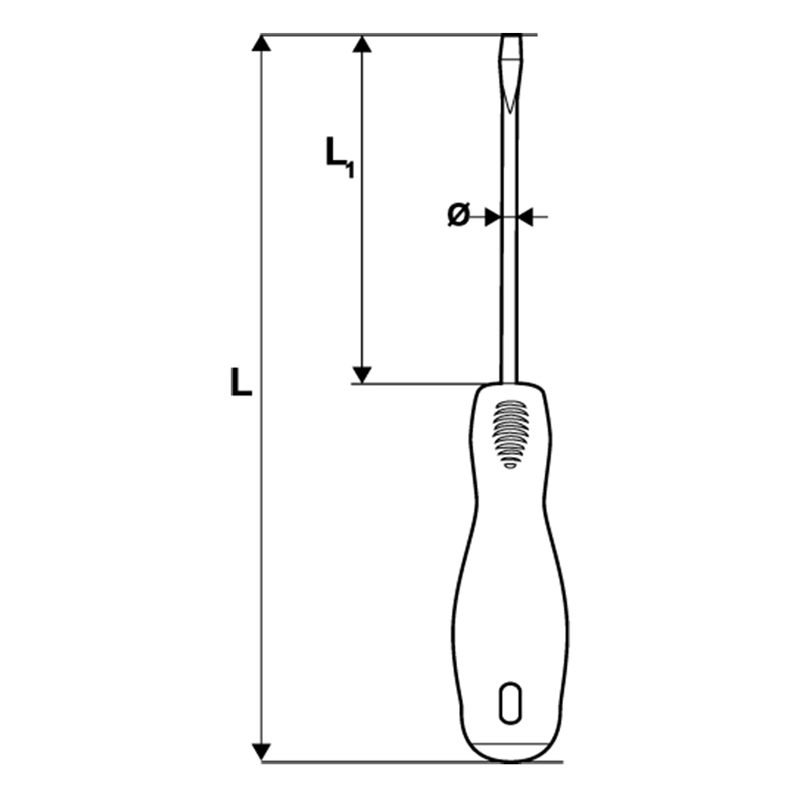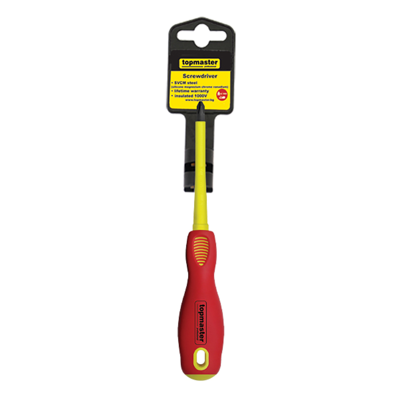 Insulated screwdrivers with protection. It has been tested at 10000 V. Made of *SVCM* steel, and the handle itself is double-layered for greater convenience. The dimensions of the screwdriver are: L = 135 mm, L1 = 60 mm, Ø3 mm.