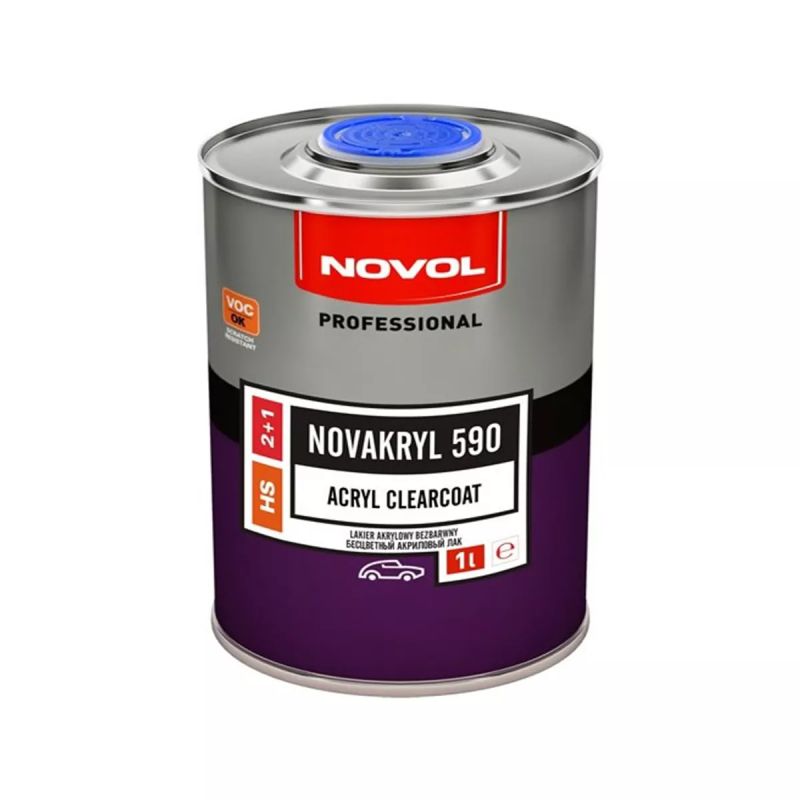 Acrylic varnish NOVAKRYL 590 is a colorless varnish used in combination with H5120 hardener . The varnish has increased scratch resistance thanks to special ceramic additives. Very economical to use. The preparation time of NOVAKRYL 590 compared to NOVAKRYL 580 allows larger surfaces to be repaired without any problems. It is also recommended that NOVAKRYL 590 be used for application on water-based coatings, as it is more resistant than other colorless varnishes when applied on underdried water-based substrates. In combination with a hardener it allows to cover an area of approximately 12 m2 with a layer thickness of 50 µm.