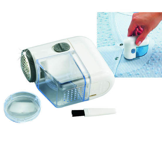 Device for cleaning hairs and lint from fabrics of the WENKO brand. Compact, stable and efficient. Made of high quality plastic and stainless steel. The device measures 7.5 x 4 x 7 cm. There is a container for the hairs and lint collected with the cleaning brush.