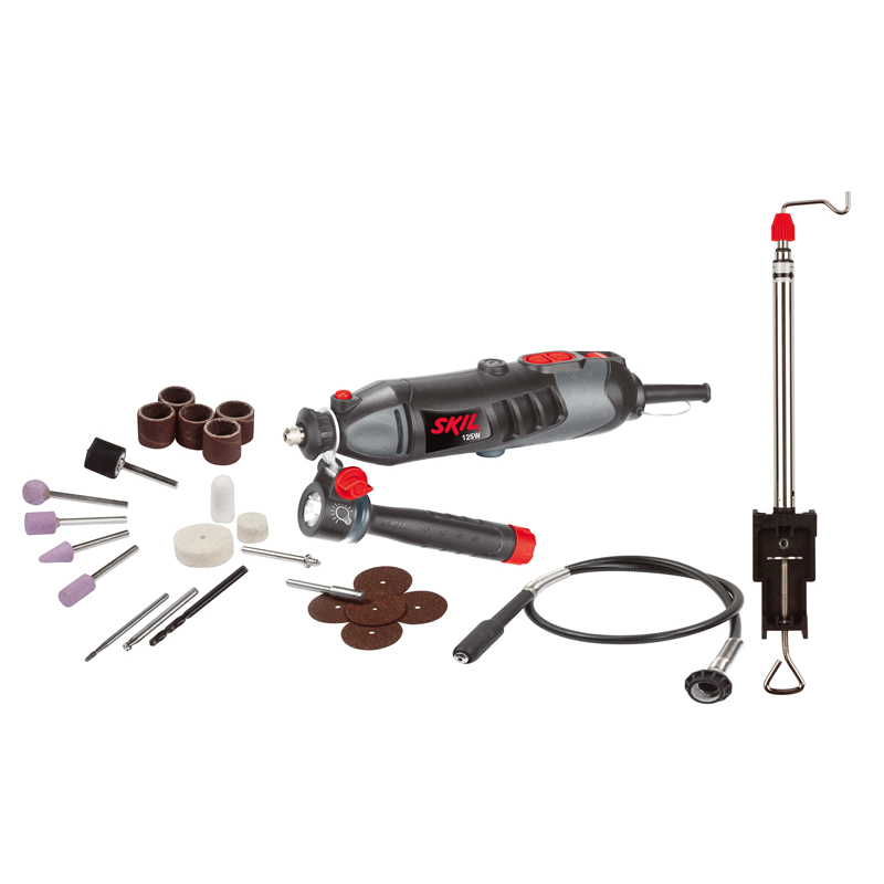 The set includes 25 consumables in a convenient carrying case. It is ideal for any work at home. Spindle lock option. Handle with soft anti-slip coating.