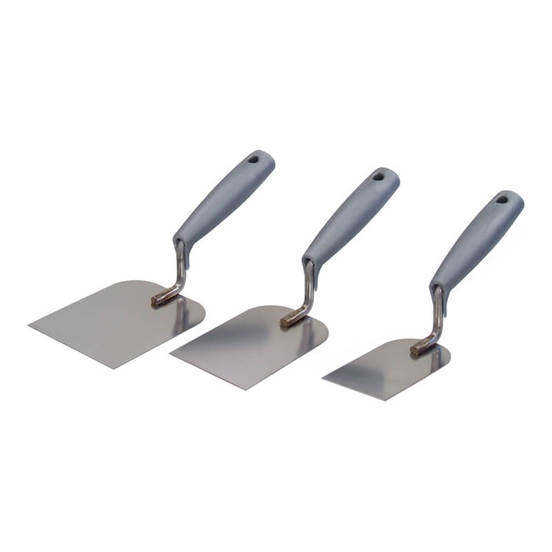 PIK TOOLS trowel with stainless steel coating for plaster with a body made of stainless steel. The trowel measures 120 x 100 mm and has a plastic handle.