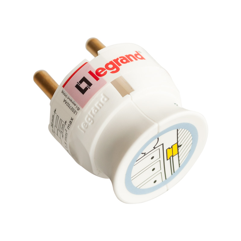 Universal schuko plug, manufactured by LEGRAND. The model of the French company is made of high quality and thermoplastic PVC base. The plug is without earthing. The operating frequency of the model is 16A and its color is white. The LEGRAND Slim plug has a degree of protection against dust and water IP20, which makes it suitable for use in dry and dust-free environments.