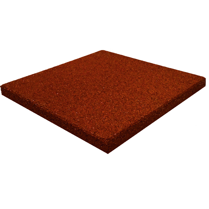 Shock-absorbing red EPOS rubber flooring with dimensions 400 x 400 x 30 mm. Intended for securing children's and sports grounds, gyms, garages and overpasses, balconies and terraces, production premises, stations and gas stations, alleys and bridges, shooting ranges, as well as around swimming pools and Jacuzzis.