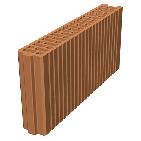 Ceramic block with vertical cavities WIENERBERGER, for protected masonry, with nut and fader, intended for non-bearing walls with a wall thickness of 8 cm, for closing vertical risers, shafts and partitions in service rooms, walling baths and sanitary niches.