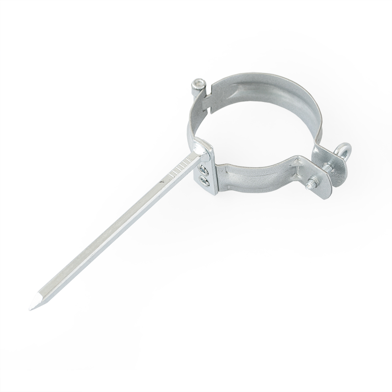 Galvanized pipe clamp with nail 150 mm. The size of the pipe hole is ф100. The pipe clamp is manufactured by KJG. Galvanized sheet metal is one of the most famous and widespread materials, thanks to its low price and high quality. It is not as resistant to corrosion as colored galvanized sheet metal, which is the only drawback of this material. To improve the quality of galvanized sheet metal, it is desirable to cover it with additional surface protection.