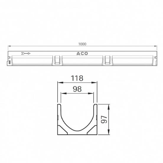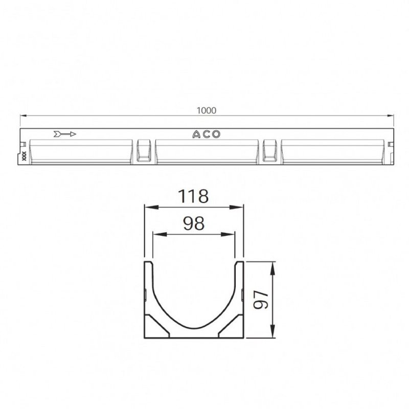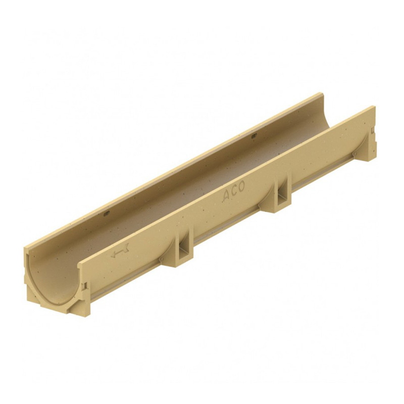 Drainage channel without grate. The drainage channel is made of polymer concrete. Ensures high resistance to heavy loads.