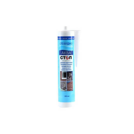 Aqua stop transparent silicone for quick and high-quality repairs in all conditions. Suitable for use indoors and outdoors, as well as in damp rooms. The transparent Aqua Stop silicone is also suitable for leaks near chimneys, on flat roofs, gutters and downspouts.
