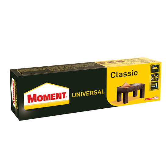 MOMENT UNIVERSAL CLASSIC is a universal contact adhesive for fast, reliable and very strong bonding with excellent initial strength and exceptional heat resistance. With it you will glue wooden materials with decorative laminates; rubber, leather, cork, felt, rigid PVC, metal, fixing sound-insulating insulation ( if not made of styrofoam), gluing veneer strips on curbs and curves, acoustic boards on plastic boards and on a wide variety of wall covering materials. Use on dry and sound surfaces.