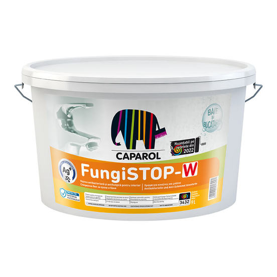 White matt paint FUNGISTOP W by CAPAROL with the possibility of manual or machine tinting. The paint is designed for rooms with high humidity such as bathrooms, kitchens, underground rooms and others. Wet rooms are characterized by a high risk of mold. FungiStop-W is used both as a preventive way against the appearance of mold and in repairs after removing mold.