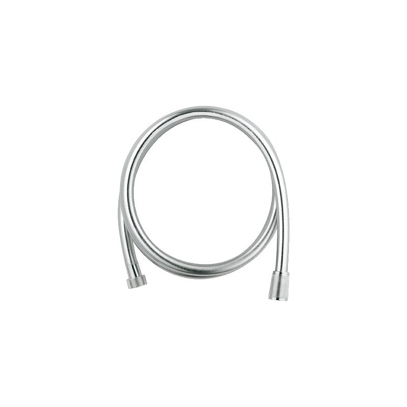The product is a StarLight® 1750mm shower hose from GROHE. It has a chrome finish. It is available in 1/2" and 1/2"connection sizes. The hose can be mounted on most standard pipe suspensions offered by GROHE.