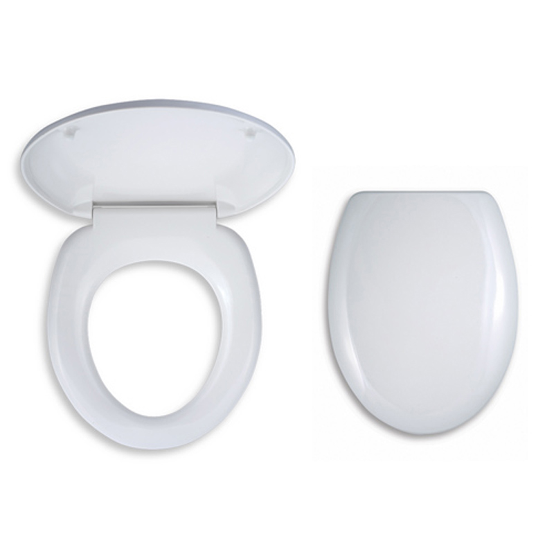 The seat is made of scratch-resistant PVC material. The set of the toilet seat is also made of PVC material. The dimensions of the toilet seat are 425 ± 25 x 370 mm.