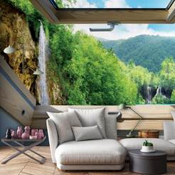 - Living room: Depending on the setting or interior of your living room, as well as whether there is enough light in it, you can choose the appropriate colors and contrast between them, and as for the details and specific images, this is a matter of personal choice. When choosing photo wallpapers for the living room, keep in mind that the paintings look one way when viewed and in a different way when they relate to the specific space. Accordingly, they can both expand and narrow the space. If you have a smaller living room, for example, where less light enters, you can choose the type of photo wallpapers for the living room that have perspective and give depth. These can be landscapes in which the gaze sinks into the sea to the sunset lights and winds along a small path starting from the room itself or hills that line up one behind the other, giving space to the view, or even some of the cityscapes that bring mood, immersing you in the respective place that fascinates you.