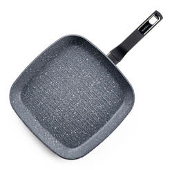 The grill pan also has high walls and a thick bottom. Its characteristic is the ribbed bottom, which makes it a perfect substitute for the grill. The grill pan can be with a Teflon or ceramic coating, which makes cooking food in it dietary and healthy. For cooking with it, it is necessary to use a minimal amount of fat, which almost covers the bottom. Thus, in the grill pan, food is prepared only with spices without excess fat. This pan is mainly used for frying meat, skewers, meatballs, kebabs and vegetables.