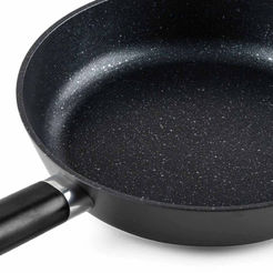 Ceramic coated pan: the coating is also non-stick, but safer. Ceramic is a natural material that does not harm our health, as it is clay-based. Ceramic coated pans allow food to be processed at temperatures up to 450°C, which would be dangerous in a pan with a Teflon coating. The coating of these pans is much more durable than Teflon. The advantage here is that you do not have to worry if the pan accidentally gets scratched. Even if this happens, the food cooked in it will not change its taste, nor will the pan itself change its qualities.