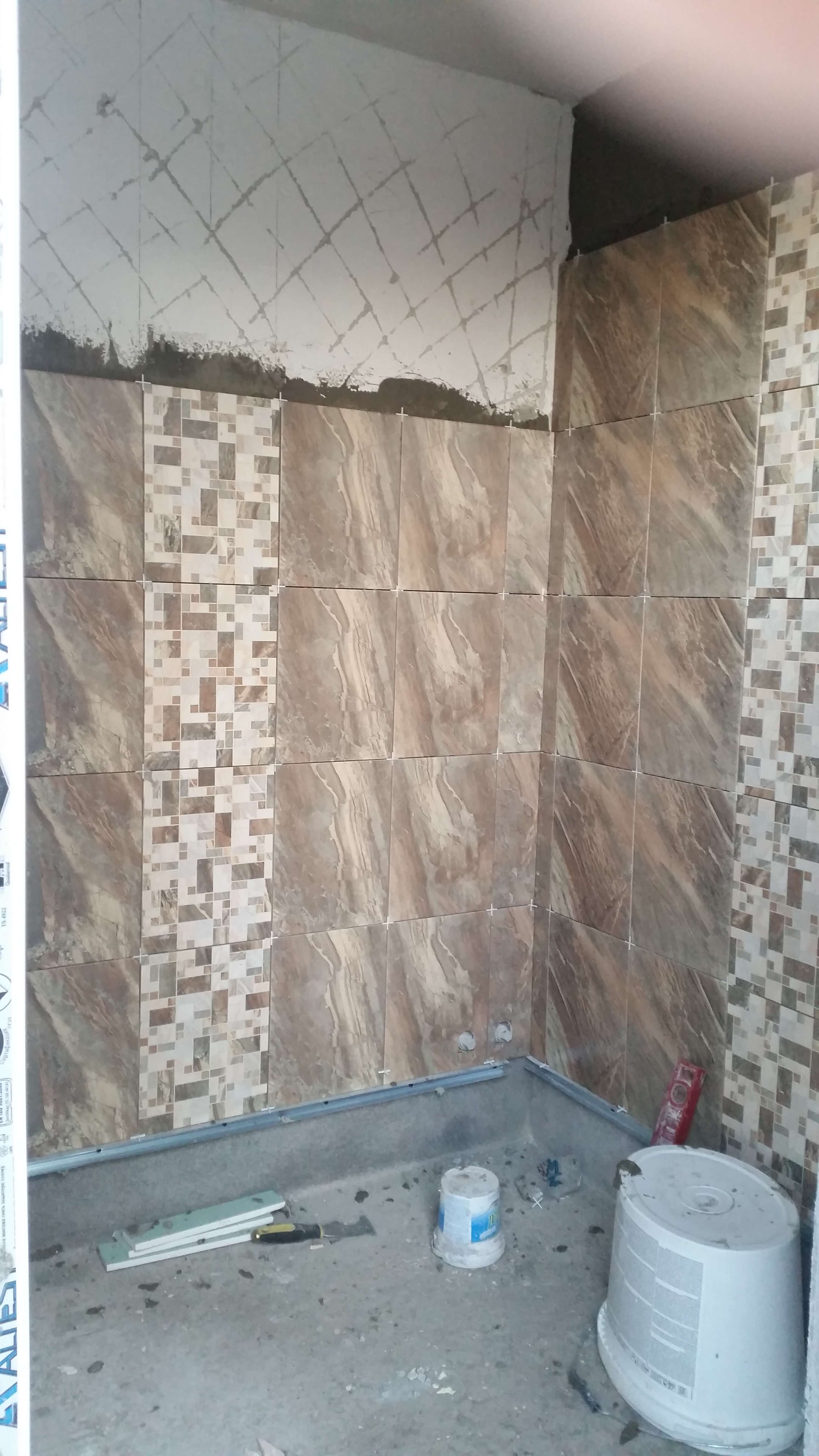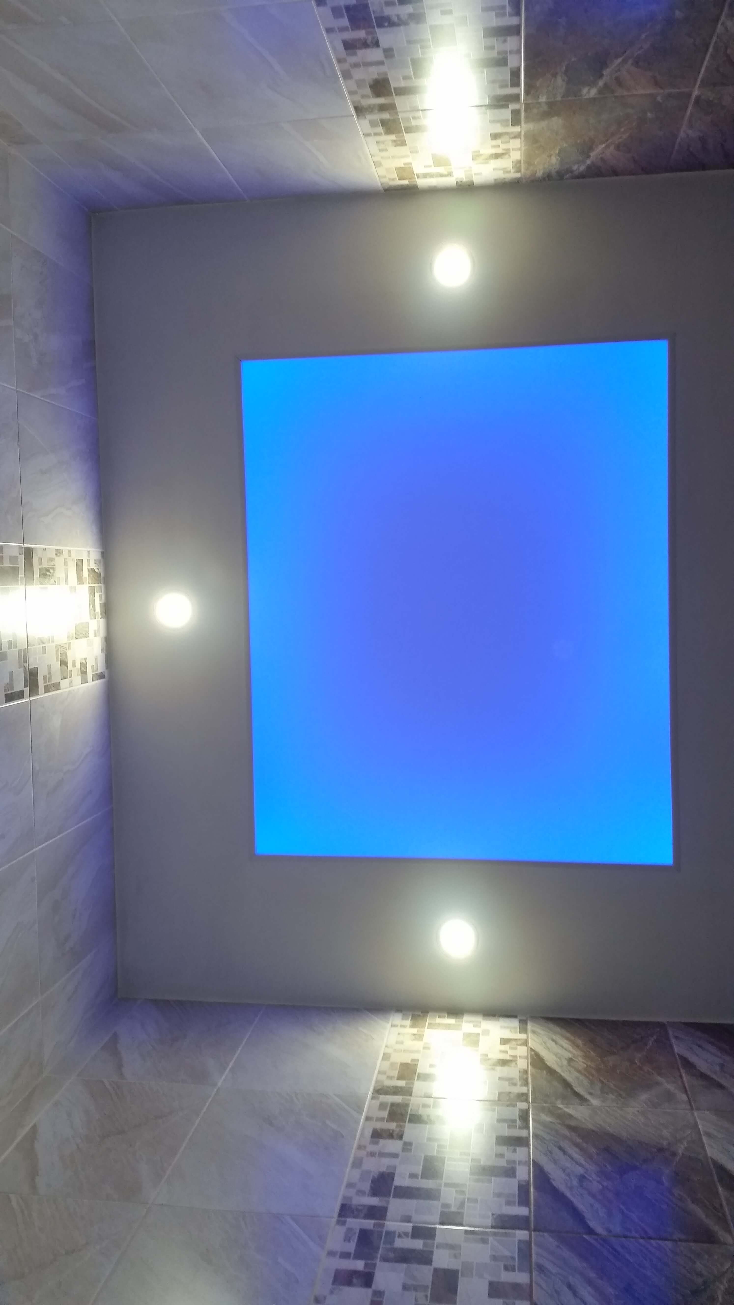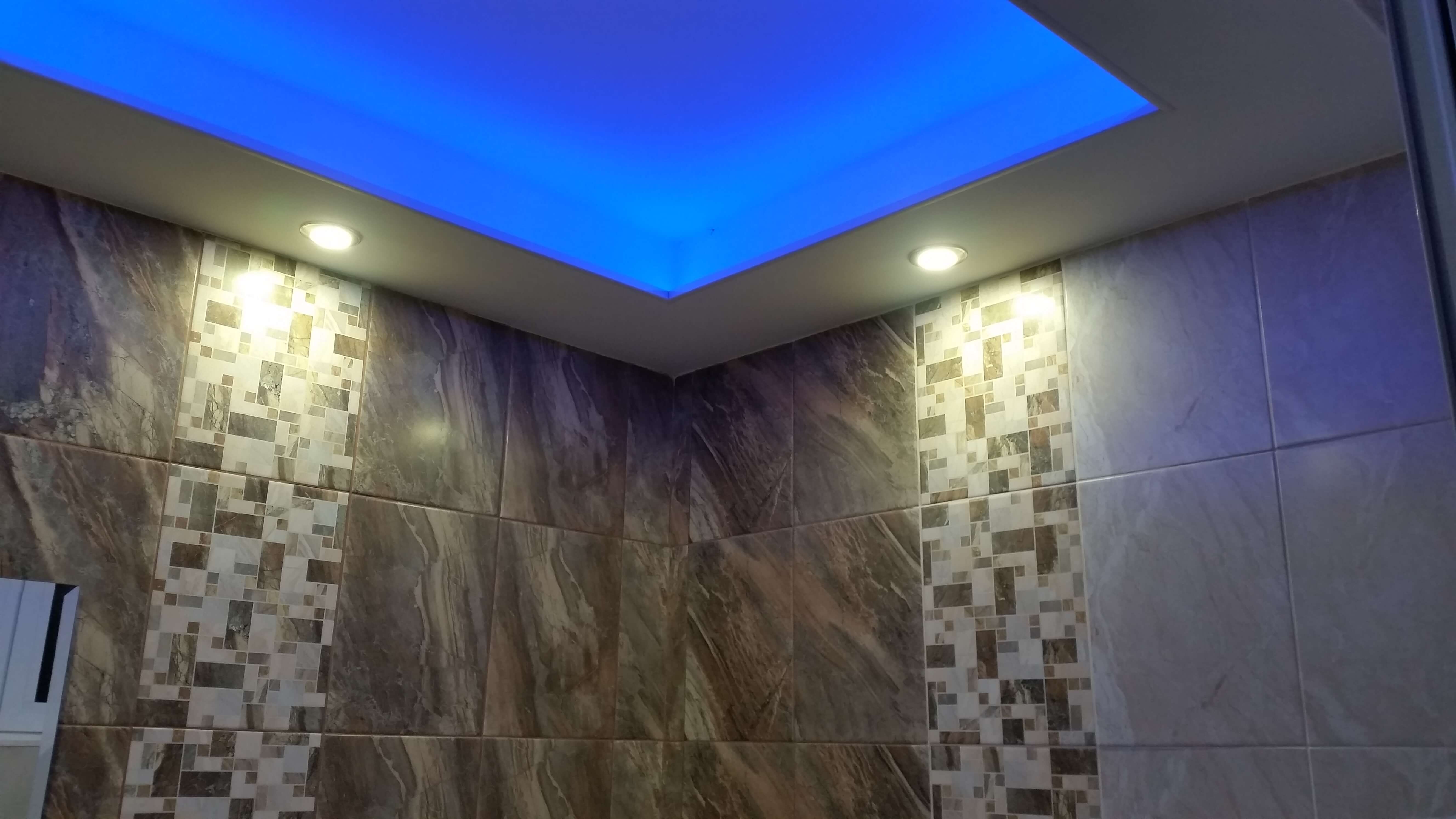 Цялостна реновация и освежаване на съществуващи WC ( мъжка и женска). Смяна на старите железни тръби, нова канализация, плочки, моноблок, мивка, дограма, аксесоари за баня. Изграждане на окачен таван с лунички и RGB LED осветление в комбинация с цвета и подредбата на фаянсовите плочки успях да постигна желания ефект да се оптимизира малкото пространство от 3 кв.м. да изглежда просторно, уютно и да е функционално.