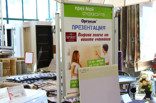 Оргахим выбрал Masterhouse в качестве первого «поля» в Восточной Болгарии, где он смог на практике продемонстрировать достоинства своего нового продукта многочисленным покупателям магазина. Перед презентацией в Бургасе серия SPIRIT «гостила» в магазине компании в Айтосе. Днем 19 мая Петр Ламбев провел презентацию краски в магазине Masterhouse – Приморско, а 20 мая настала очередь магазина «Бошнаков» ЕООД в Равде.