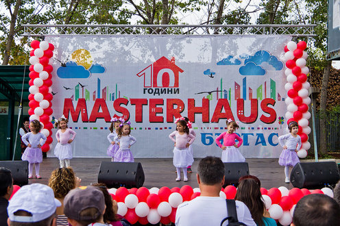 На сцене перед магазином ребята из ОДЗ «Моряче», спортивного клуба художественной гимнастики «Черноморец», танцоры ФА «Атанас Манчев», певец Георгий Дюльгеров из Бургаса и неотразимый актер Краси Радков, который помимо развлекательной деятельности Гости праздника раздали призы конкурса «Веселые моменты моего ремонта с MASTERHAUS».