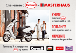 Masterhouse запустил новую игру в своей сети из 4 магазинов в Бургасе, Айтосе, Равде и Приморско. Игра организована совместно с немецкой компанией Henkel. Призы заманчивые – 4 мопеда Peugeot KISBEE. Акционная игра «Выиграй мопед Peugeot вместе с Henkel и Masterhaus», несомненно, вызовет большой интерес. Как долго продлится рекламная игра? Акция «Выиграй мопед Peugeot вместе с Henkel и Masterhaus» стартовала 1 мая и продлится до 15 июля этого года. Каковы условия участия? Единственное условие – вы покупаете продукцию Henkel на сумму минимум 30 лв. с НДС в торговых точках Masterhouse. Речь идет о продукции брендов Ceresit, Moment, Loctite, Pattex, Metylan и Tangit. Как вы можете принять участие? В магазинах Masterhouse вы найдете купоны участия, которые необходимо заполнить, указав номер выданного вами фискального ваучера. Заполненные купоны поместите в специальные боксы по акции, расположенные в торговых точках Masterhouse. Когда будут разыграны призы? Вывод 20 июля 2018 г. определит победителей, которые будут уведомлены о счастливом розыгрыше по телефону. Для каждого магазина сети «Мастерхаус» будет разыгран один победитель. Когда и где будут распространяться мопеды? Раздача мопедов пройдет с 23 июля по 10 августа этого года. в соответствующей торговой точке, в которой была совершена покупка. Победители должны предъявить фискальный чек за свою покупку. Участник, не претендующий на свой приз до 24 августа этого года, лишается права на его получение и будет заменен альтернативным победителем.
