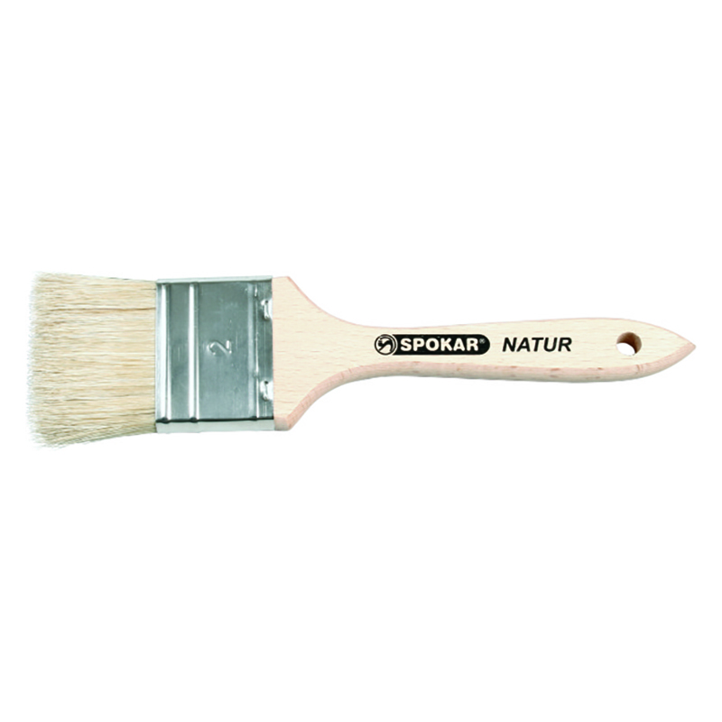 SPOKAR Natur плоская кисть с деревянной ручкой и чистой щетиной. Подходит для всех типов красок. Кисть можно использовать для любительского рисования на любой поверхности. Он предназначен как для профессиональных маляров, так и для мастеров-любителей. Для удобства пользователей кисть имеет отверстие для подвешивания, что облегчает ее хранение. Длина волос 40 мм.