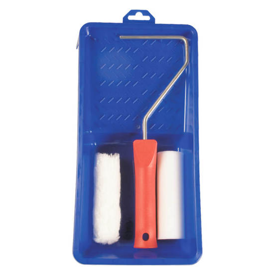 Набор для покраски SPOKAR, состоящий из валика с 2 валиками и поддона. Один валик для латекса, а другой для масляной краски. Набор чрезвычайно удобен в обращении, так как ширина роликов составляет 100 мм.