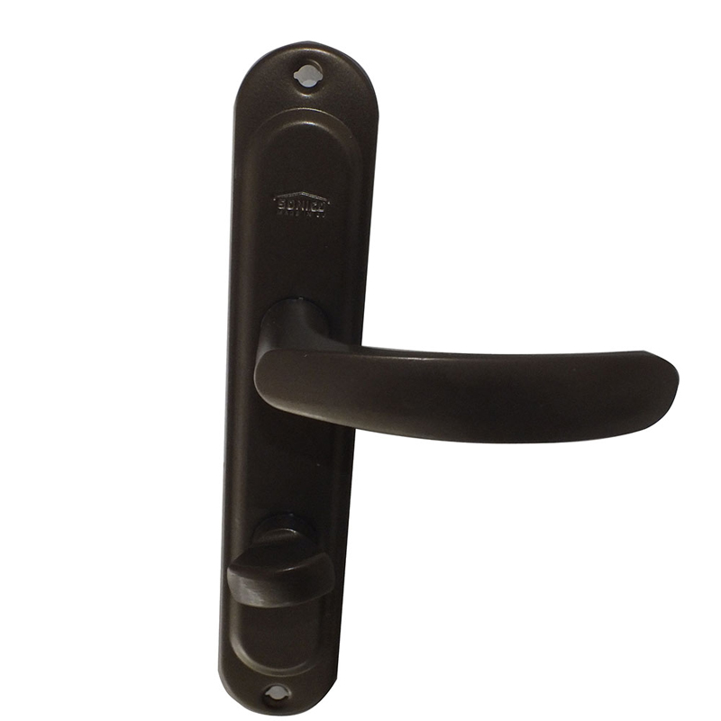 Ручка предназначена для установки на двери с сервисным замком. Двери могут быть внутренние и наружные – деревянные, ПВХ и металлические.