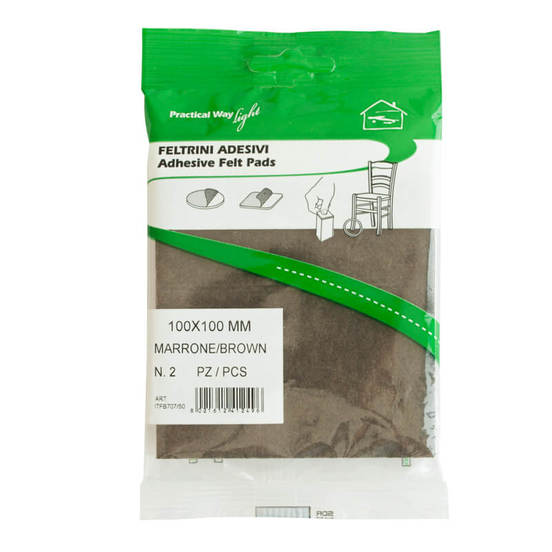 Набор из 2 самоклеящихся защитных накладок марки ITALFELTRI белого и коричневого цветов для ножек столов, стульев и другой мебели. Самоклеящиеся накладки размером 100 х 100 мм служат для защиты напольного покрытия от царапин, вызванных движением стульев, столов или мебели. Их также можно использовать в качестве буфера, защищая стены от ударов межкомнатных дверей.