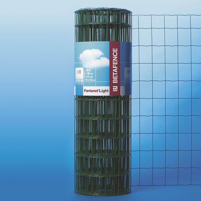 BETAFENCE Pantanet Легкая сетка для забора зеленого цвета. Сетка изготовлена из электросварных проволок. Изготавливается из оцинкованной стальной проволоки (мин. 40 г/м2) и имеет сверху полиэфирное покрытие толщиной не менее 100 мкм. Он имеет универсальное назначение. Имеет 10-летнюю гарантию от коррозии.