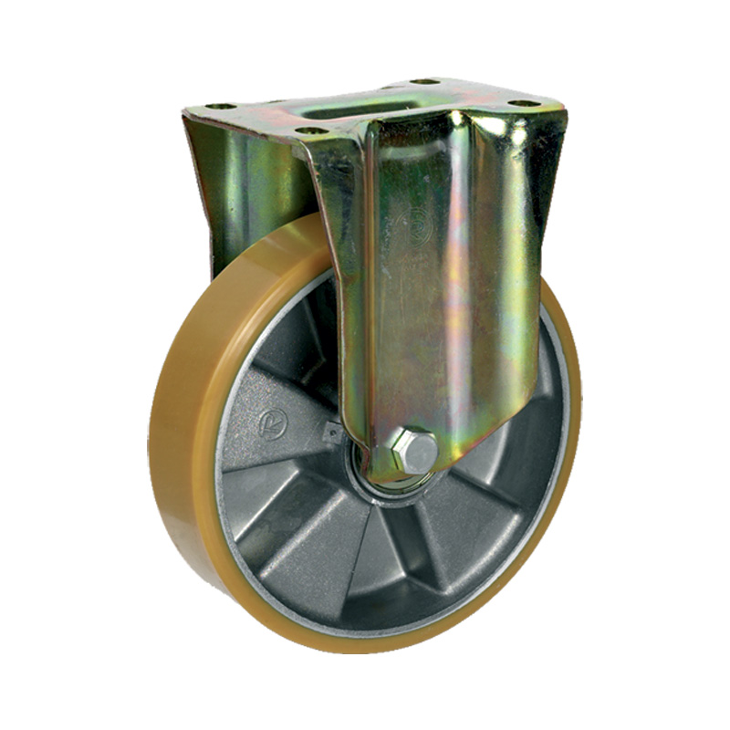 Стационарное колесо на полиуретановой пластине с алюминиевым ободом на подшипнике TELLURE ROTA Ф150мм произведено в Италии и имеет полипропиленовый центр. Колесо имеет твердость 95 Shore A. Обладает отличным сопротивлением качению и эластичностью. Обладает исключительной устойчивостью к износу. Обод изготовлен из литого алюминия. Этот тип колес подходит для средних и тяжелых нагрузок , а также для перемещения машин. Они обладают отличным сопротивлением качению и позволяют легко перемещать тяжелые грузы. Этот тип колес подходит для плитки и цемента.
