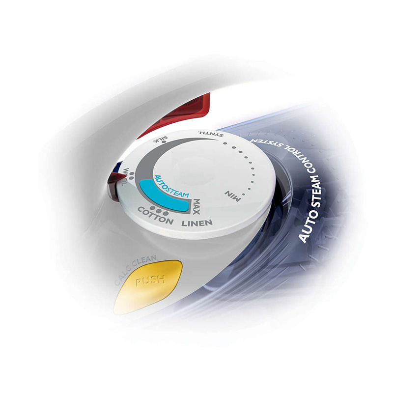 Утюг оснащен регулятором токоррекция пара , который устраняет опасения по поводу выбора количества пара. Просто выберите температуру для одежды, которую вы гладите, и все готово.