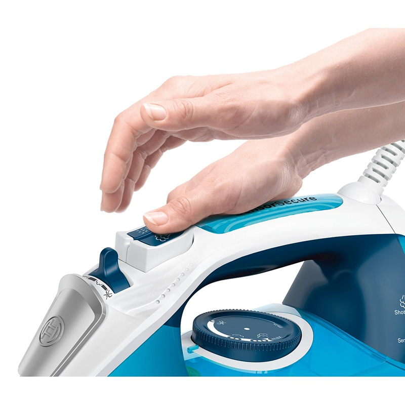 Система SensorSecure: Утюг автоматически выключается, когда его опускают, и снова быстро нагревается, когда его поднимают. На самой ручке есть датчики. При отпускании ручки утюг автоматически выключается.