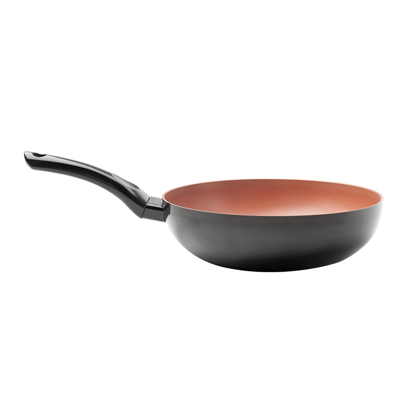 Сковорода Wok из серии Terracotta итальянского бренда DOMO. Изготовлен из литого алюминия с антипригарным керамическим покрытием Ceralon без ПФОК /перфтороктановой кислоты, используемой в производстве антипригарных покрытий, которая является канцерогенной для человека и приводит к загрязнению окружающей среды/.