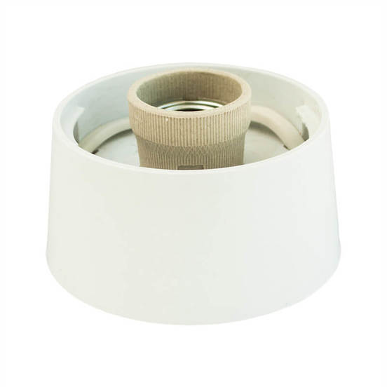 Прямое основание с патроном для абажура ATRA. Основание изготовлено из пластика и имеет белый цвет. К основанию абажура крепится патрон для лампочки.