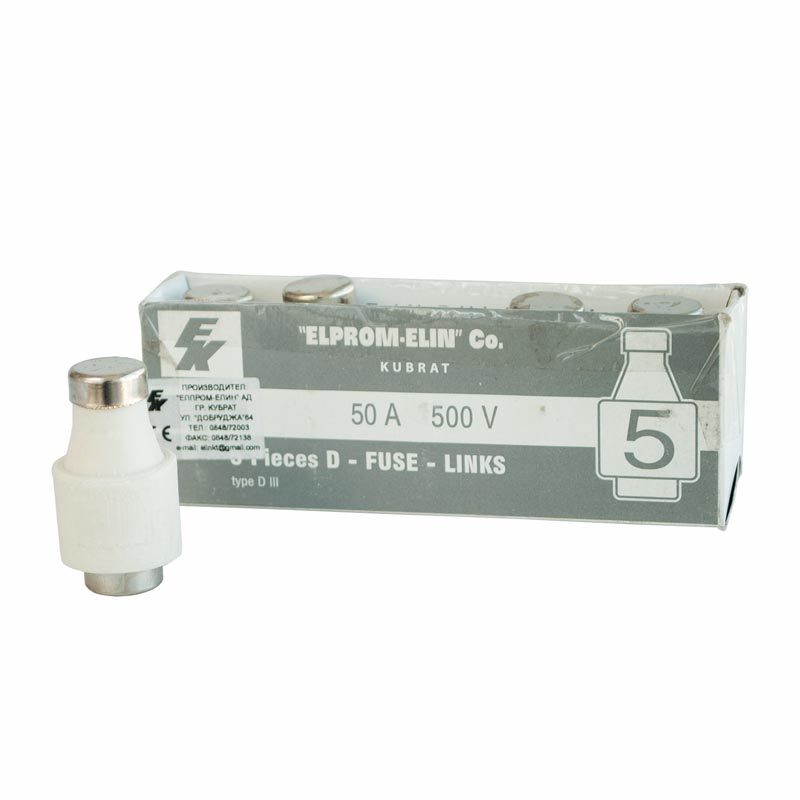 Комплект из 5 предохранителей на номинальный ток 50А. Предохранители доступны без керамических колпачков/предохранителей.
