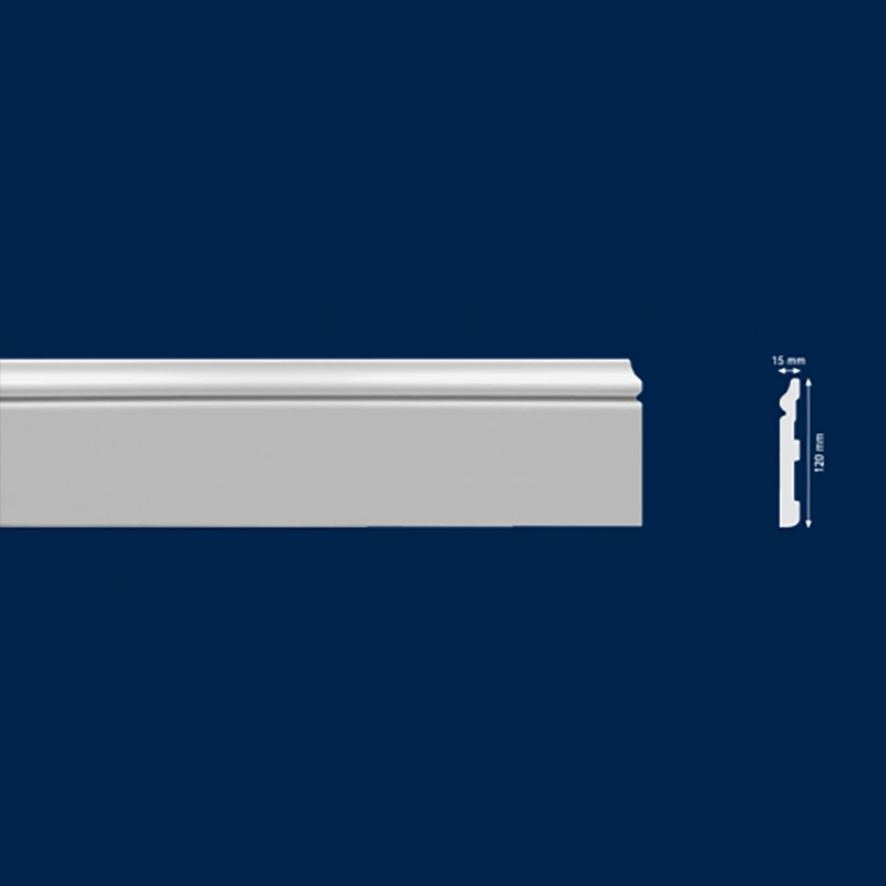 Декоративный плинтус высокой плотности размером 15 х 120 мм и длиной 2 метра. Декоративные напольные плинтусы отличаются чрезвычайной твердостью и исключительным качеством. Плотность порожков порядка 400 кг/м3. Их твердость защищает их от травм при контакте с другими предметами.